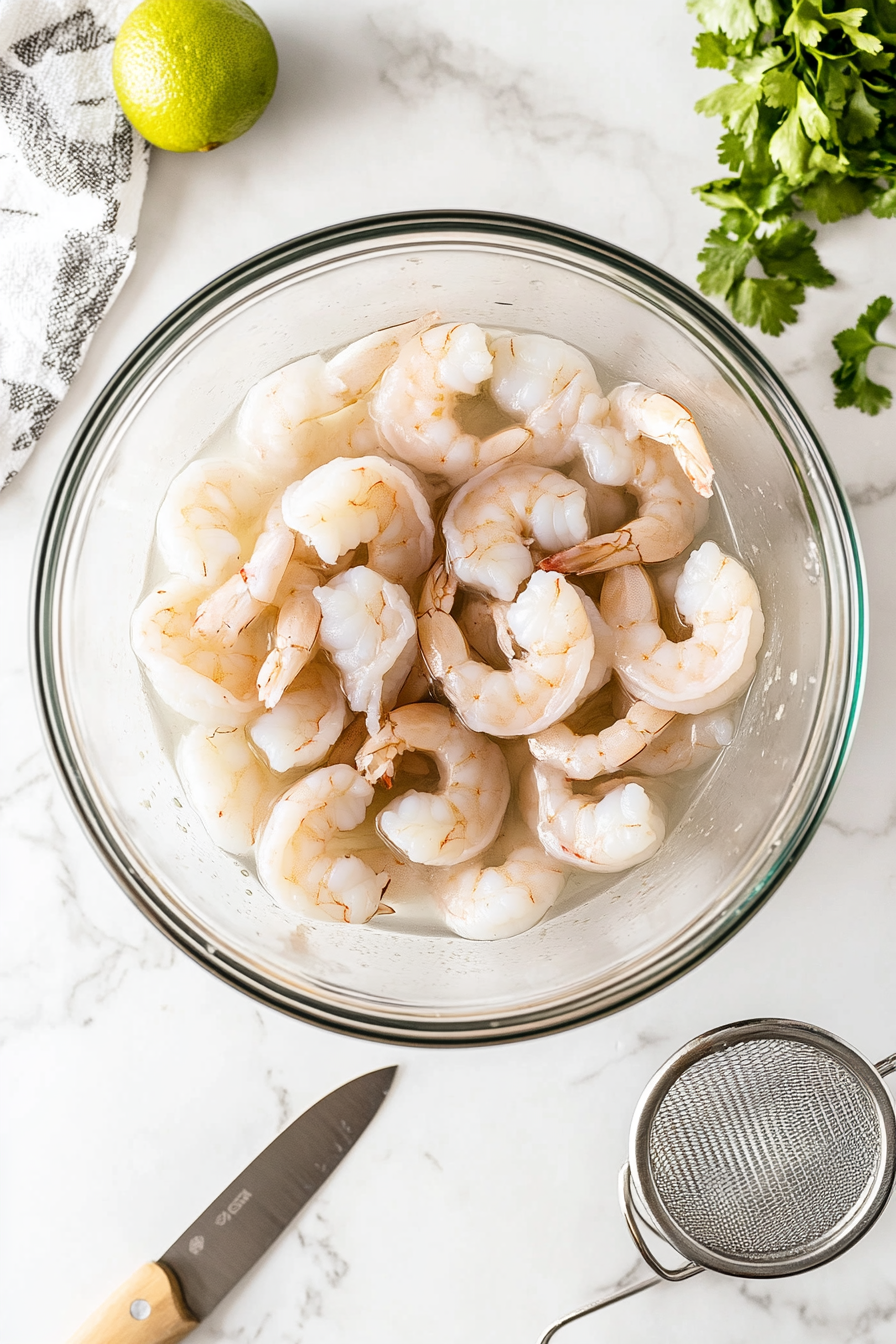 Rinse the shrimp under cold water, drain, and set aside.