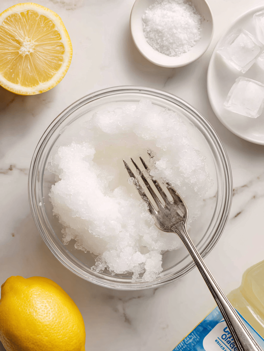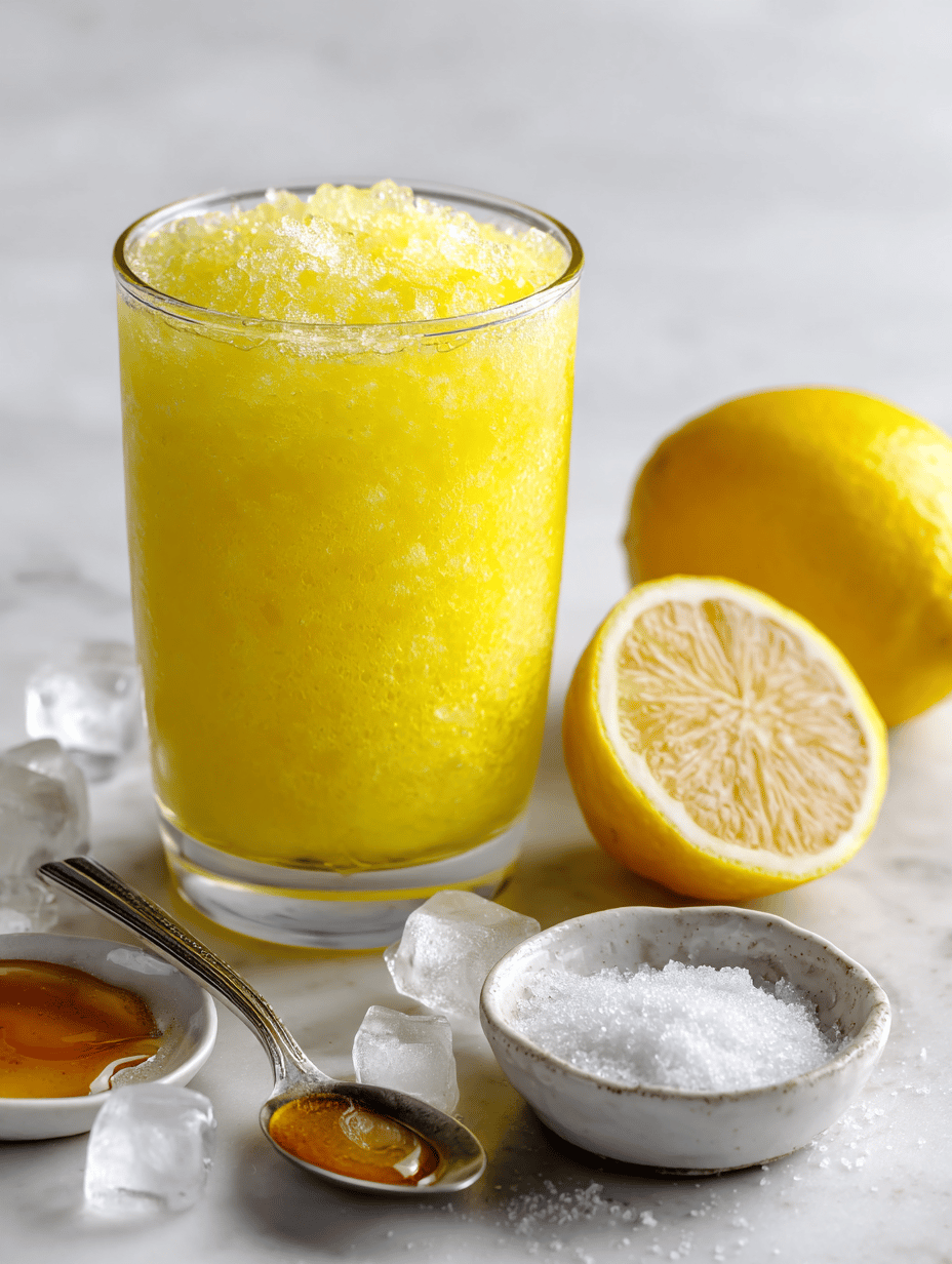 Scoop the icy slush into glasses and squeeze lemon wedge on top for a bright, tangy finish.