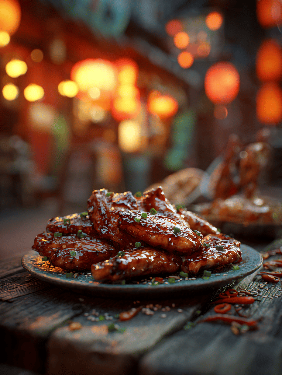 Serve the wings hot, optionally garnished with sesame seeds or chopped green onions for extra flair. Enjoy the crispy, sticky, sweet-savory bites that resemble Halloween bat wings!
