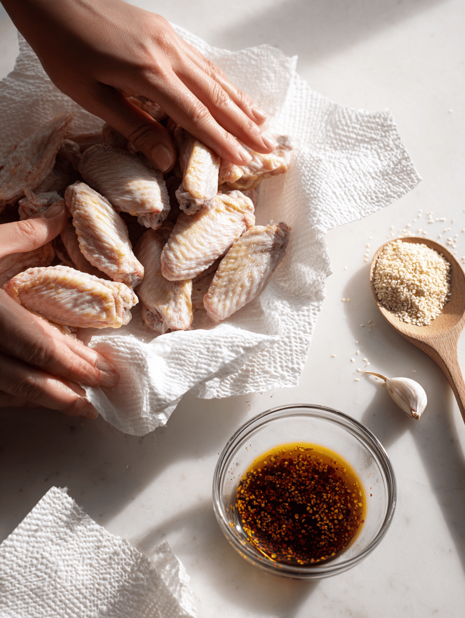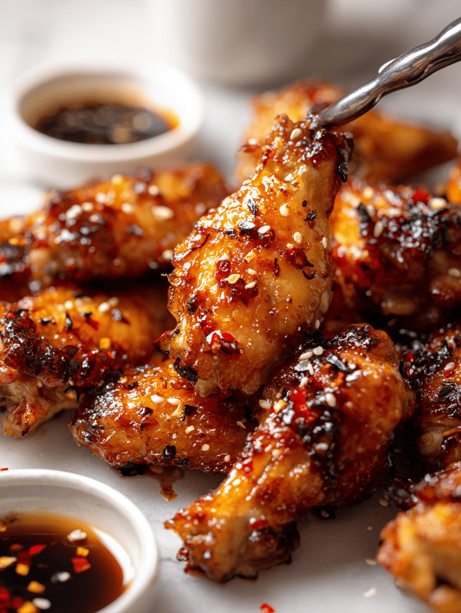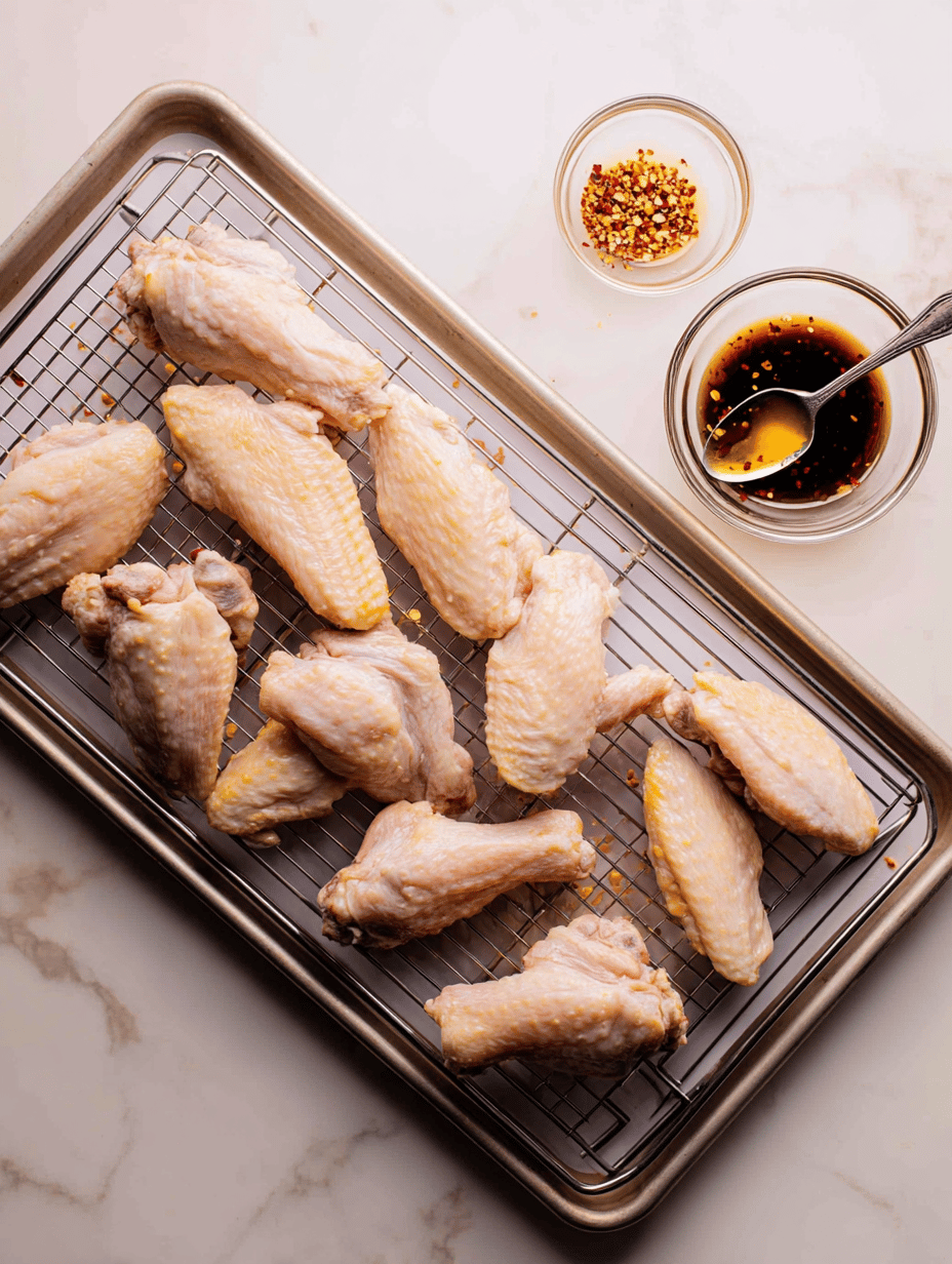 Pat the chicken wings dry with paper towels until they feel slightly tacky; this helps the glaze stick better and promotes crispiness.