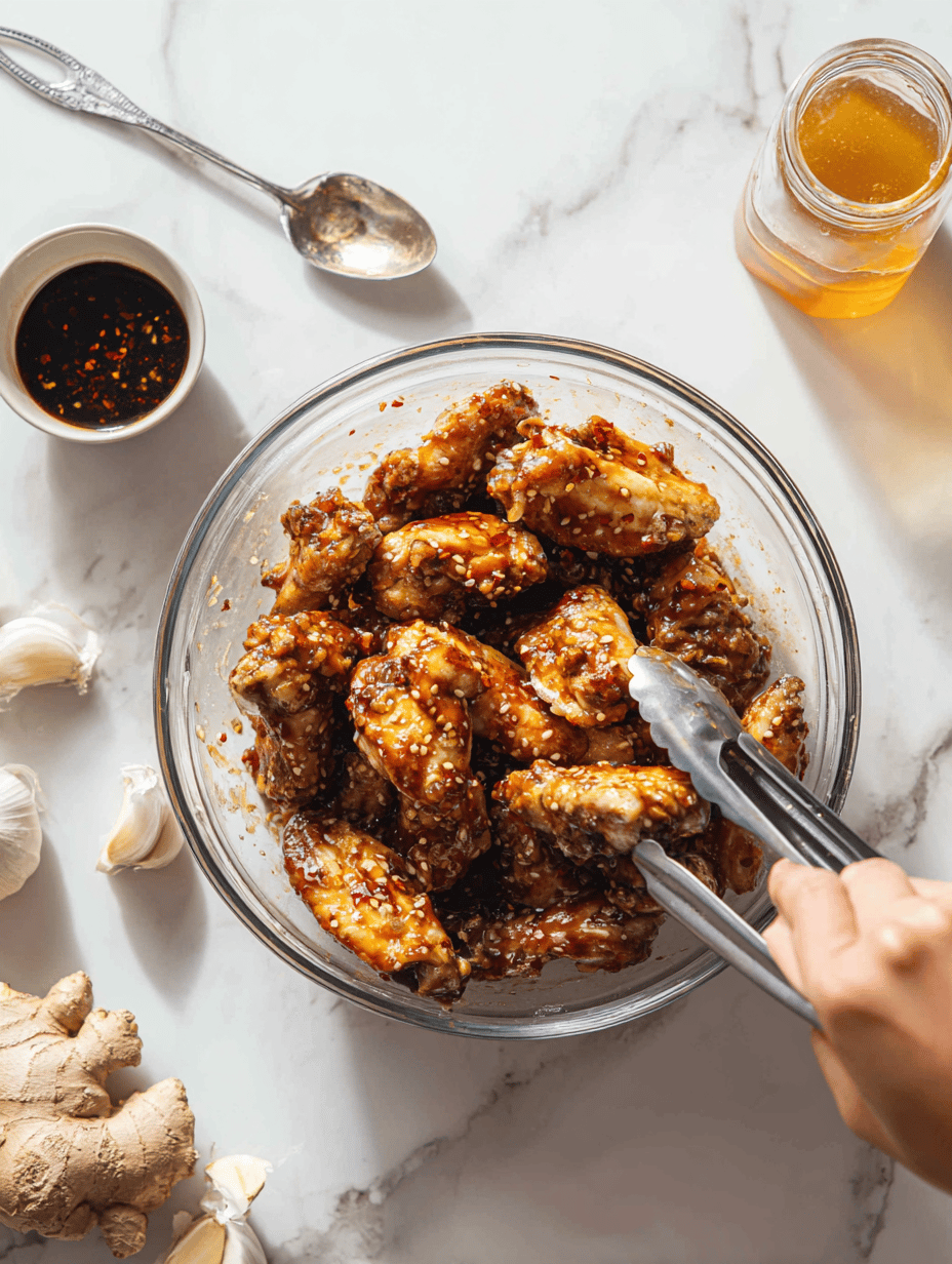 Add the chicken wings to the bowl with the marinade, tossing to coat each piece thoroughly. Cover and let marinate for at least 30 minutes, or up to 2 hours for deeper flavor.