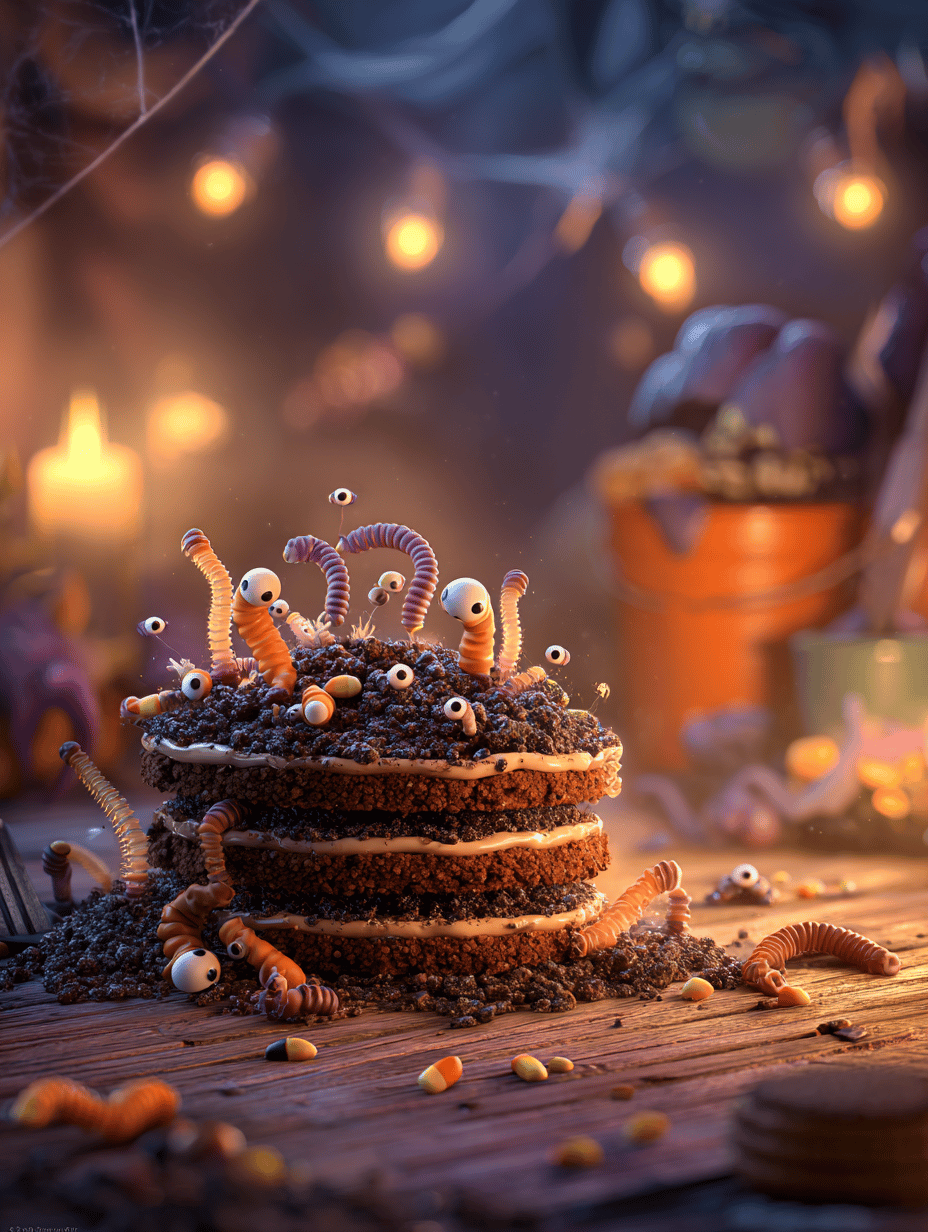 For extra fun, brush gummy worms with edible glitter for a shimmering, spooky effect. Always chill the cake thoroughly before serving to ensure clean slices and well-set layers.