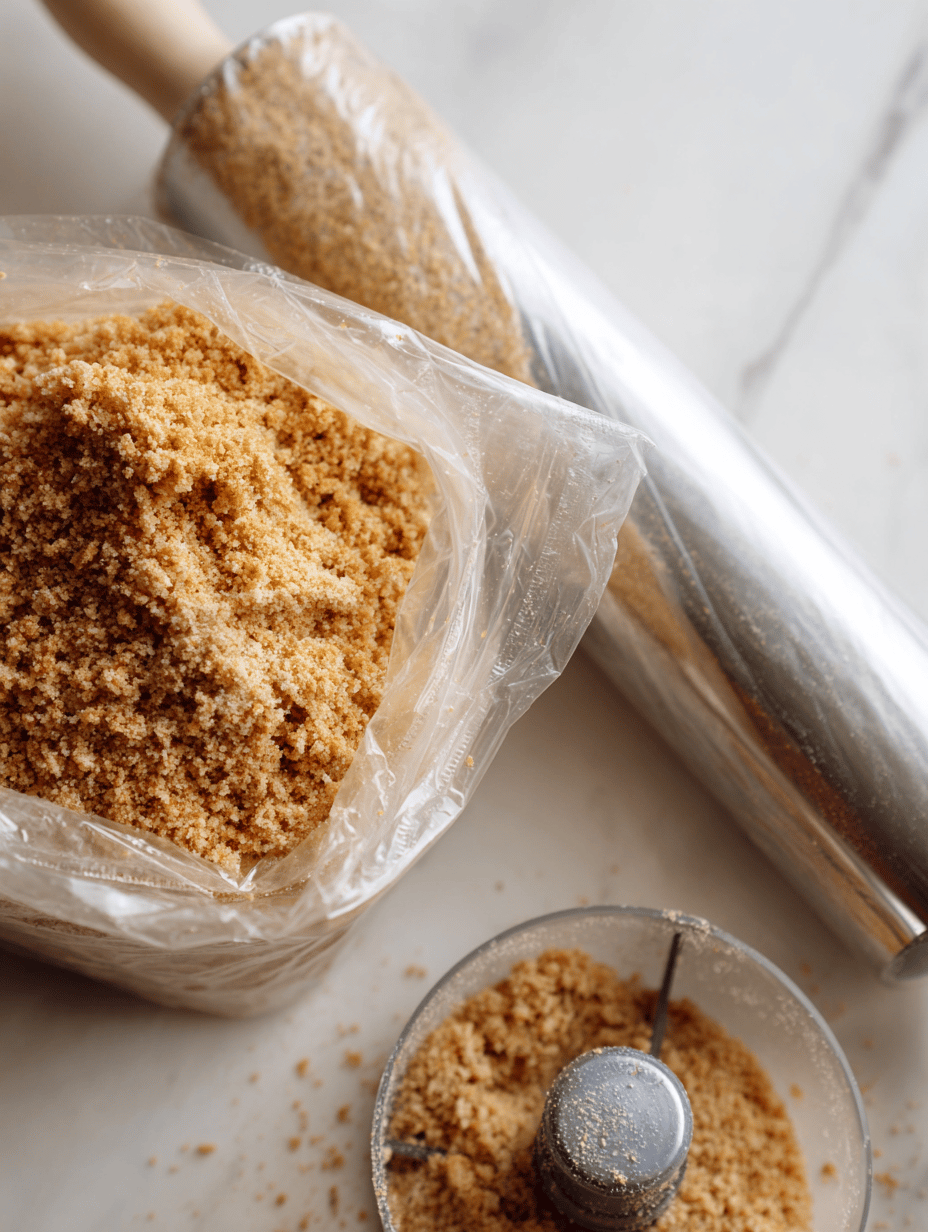 Crush the cookies into fine crumbs using a plastic bag and rolling pin or a food processor, leaving some larger pieces for crunch.
