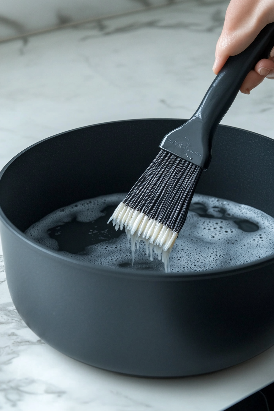 Wash down the sides of the pan with a wet brush to prevent crystallization.