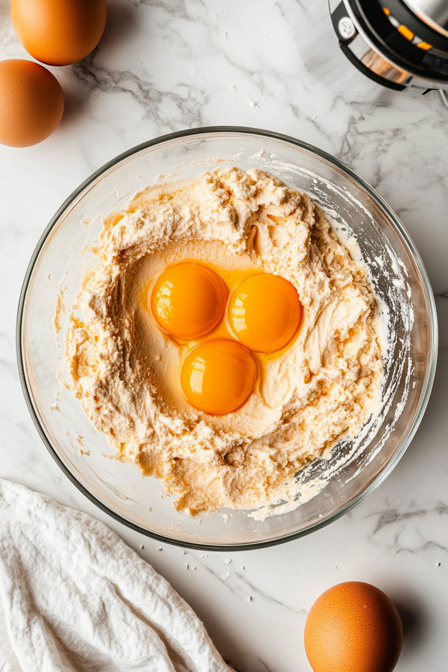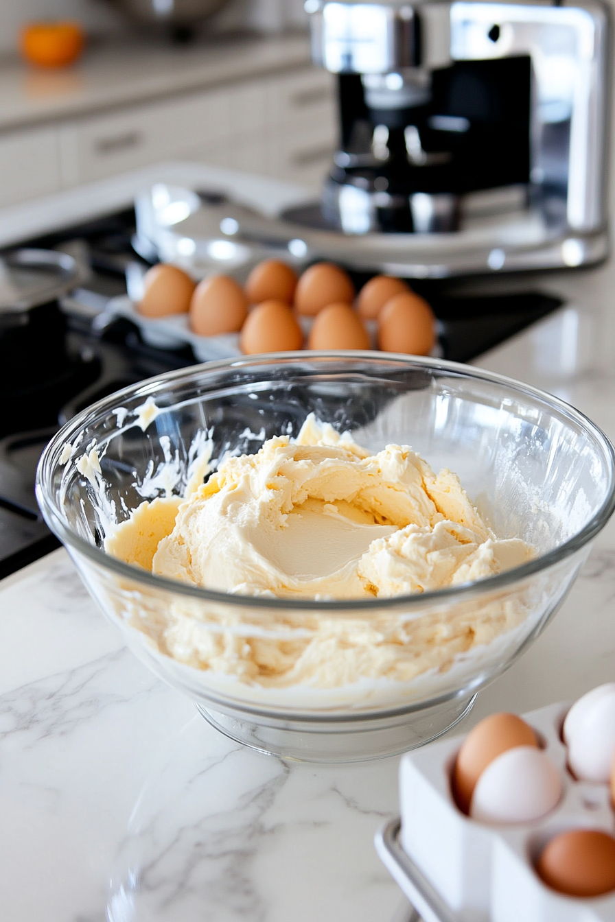 In a mixing bowl, beat together cream cheese and sugar until smooth. Add pumpkin puree, then eggs one at a time, mixing well after each addition.