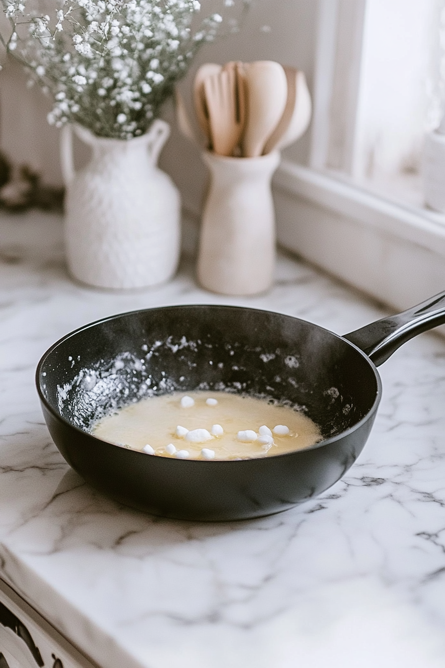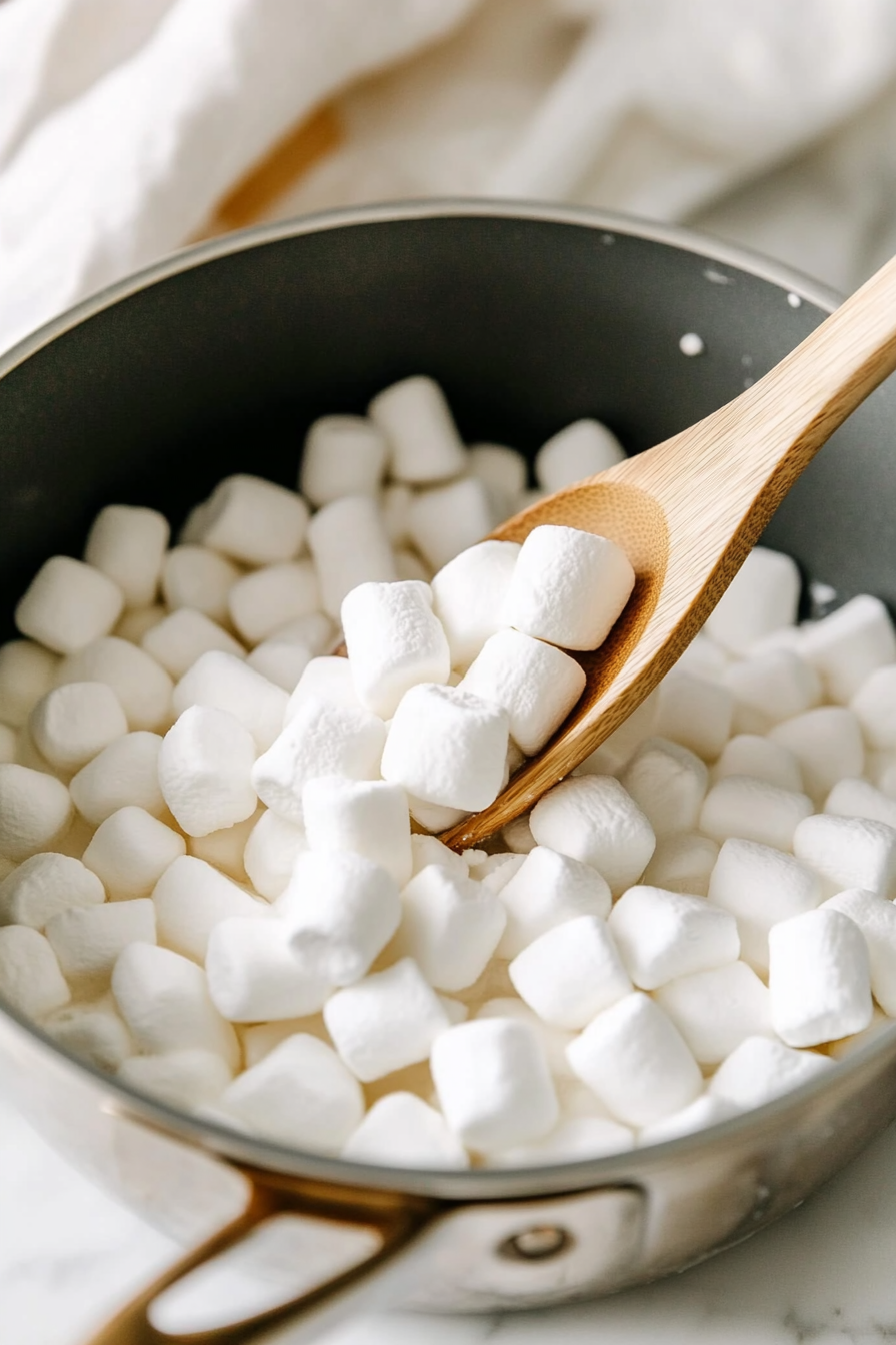 Add 10 oz of marshmallows, stirring until completely melted (or microwave in 30-second intervals, stirring until smooth).