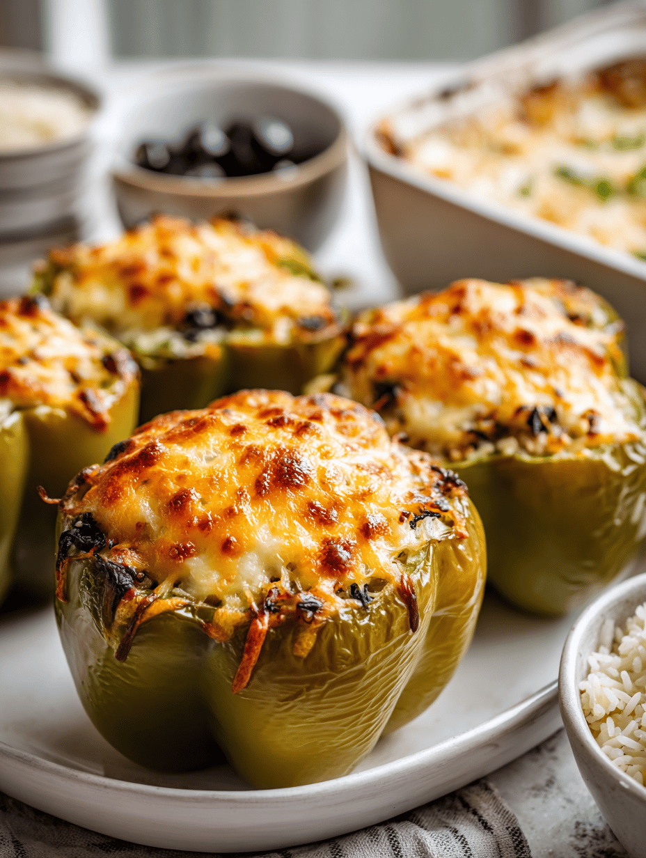 Remove from the oven and let the peppers rest for about 5 minutes, allowing the filling to set slightly and making them easier to serve.