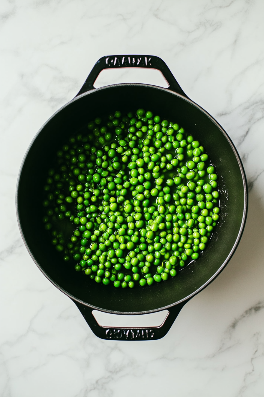 Add peas and liquid: Drain the soaked peas and add them to the pot. Pour in vegetable or chicken broth (or water), enough to cover the peas by about an inch.