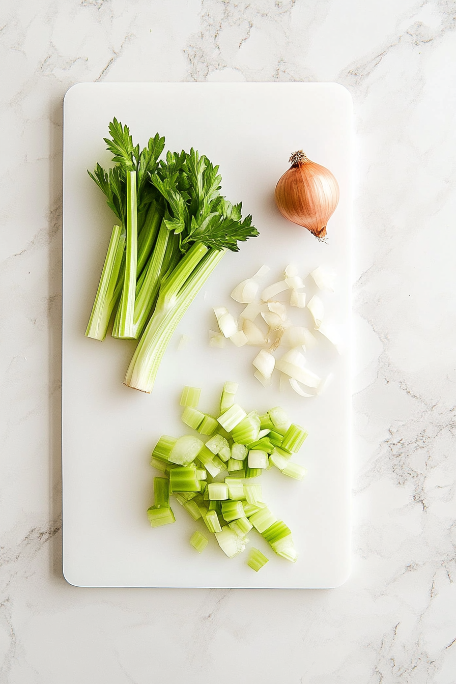 Prepare ingredients: Chop onions, carrots, celery, and any other vegetables. If using meat, dice it into small pieces.