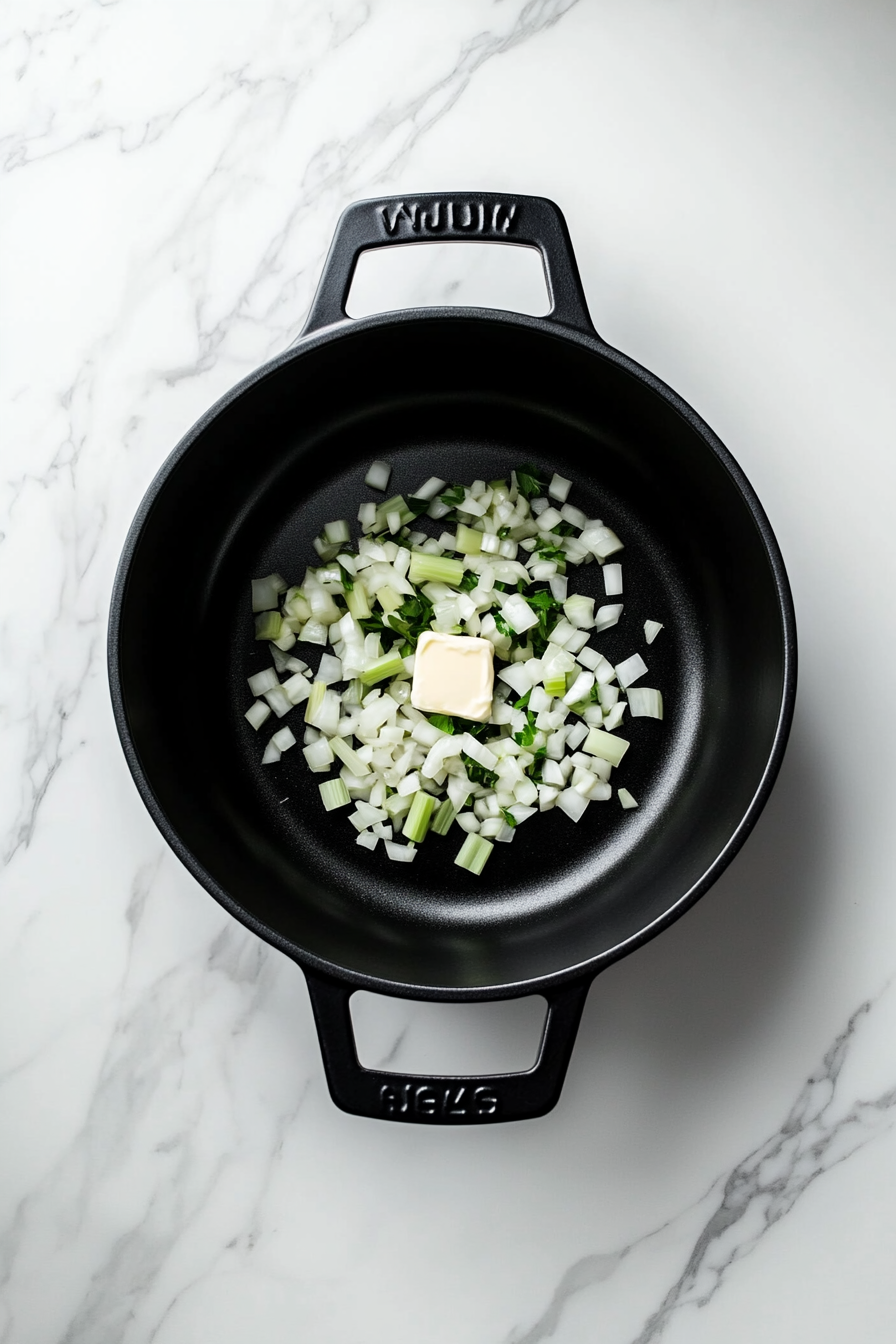 Saute aromatics: In a large pot or Dutch oven, sauté onions, carrots, celery, and garlic in oil or butter until softened.