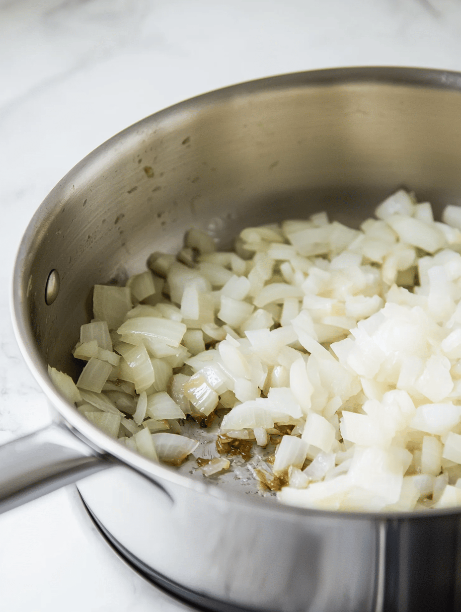 In the same pot, add the chopped onion and cook until it becomes translucent and fragrant, about 5 minutes, scraping up any brown bits from the bottom. This layer of flavor will deepen the sauce.
