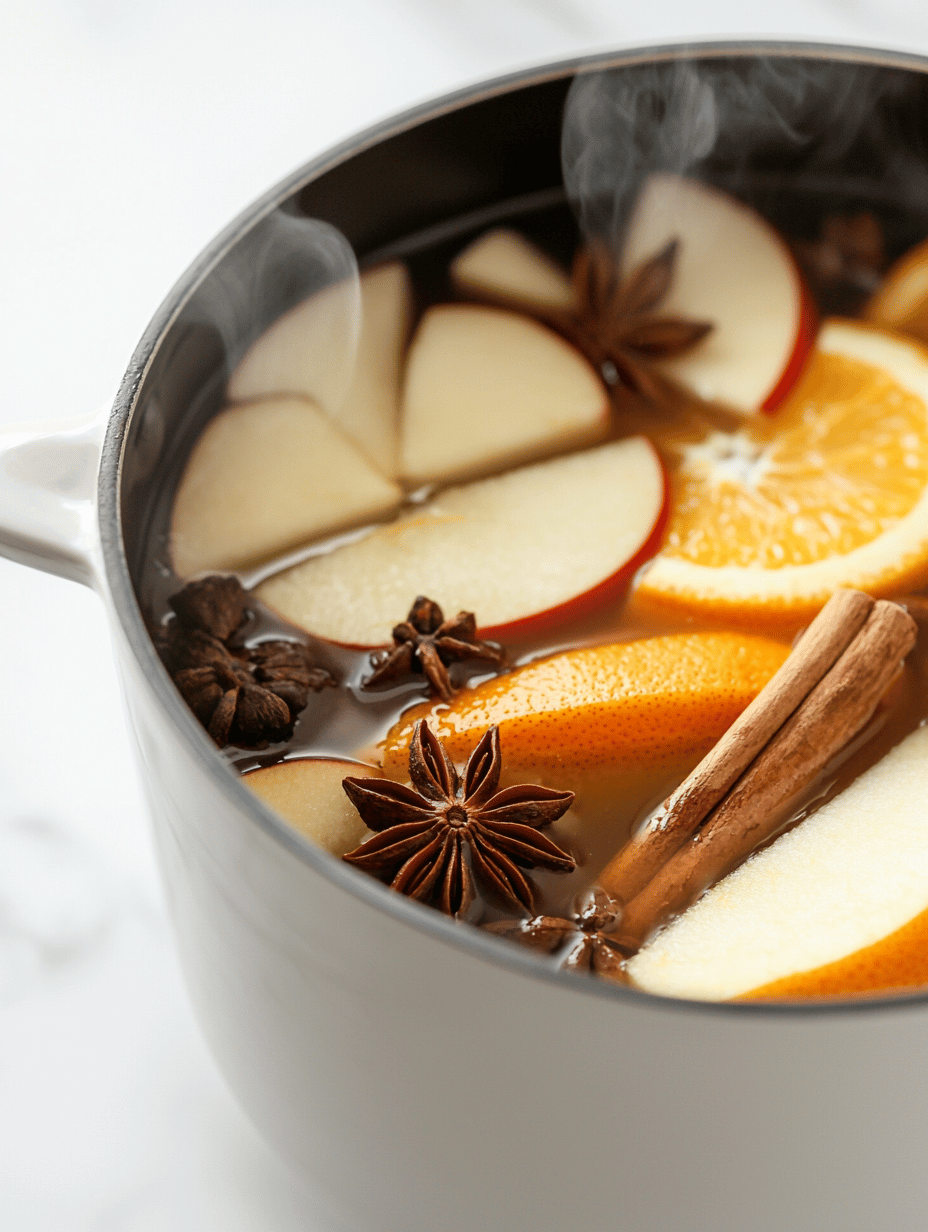 This simmering beverage combines cinnamon sticks, cloves, citrus slices, and other aromatic spices simmered in water to fill the home with warm, festive scents. The process involves gently simmering the mixture on the stove, resulting in a fragrant, flavorful liquid that enhances holiday ambiance with a cozy appearance and inviting aroma.