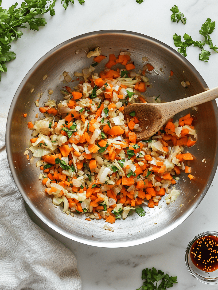 Add the chopped veggies, stir in soy sauce, and cook until tender, about 5-7 minutes.