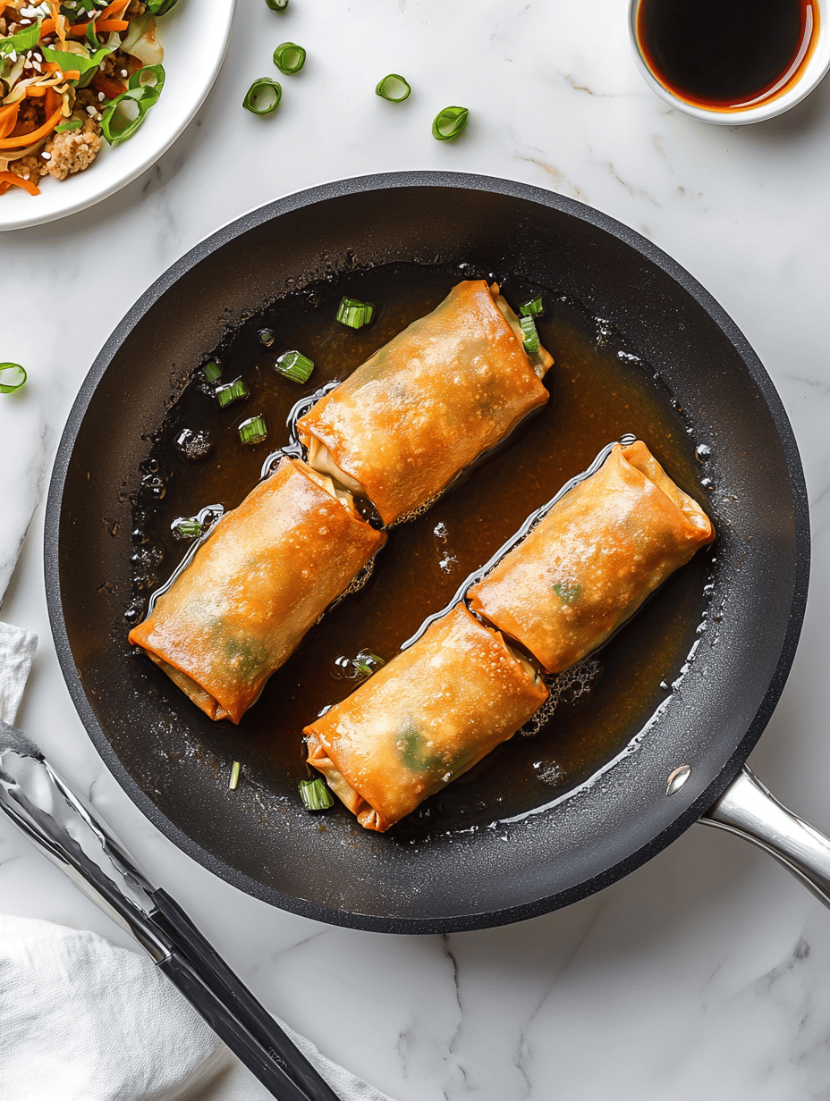 Fry the egg rolls in batches, cooking for about 3-4 minutes on each side until golden brown and crispy.