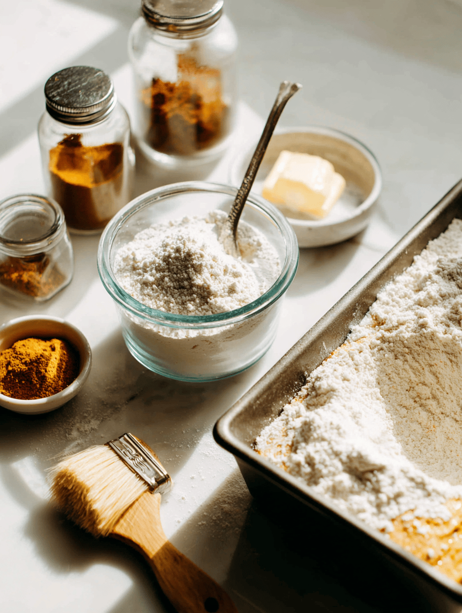 In a large mixing bowl, whisk together the flour, baking soda, baking powder, salt, and all the spices until evenly combined. This creates a flavorful, well-integrated dry mixture.