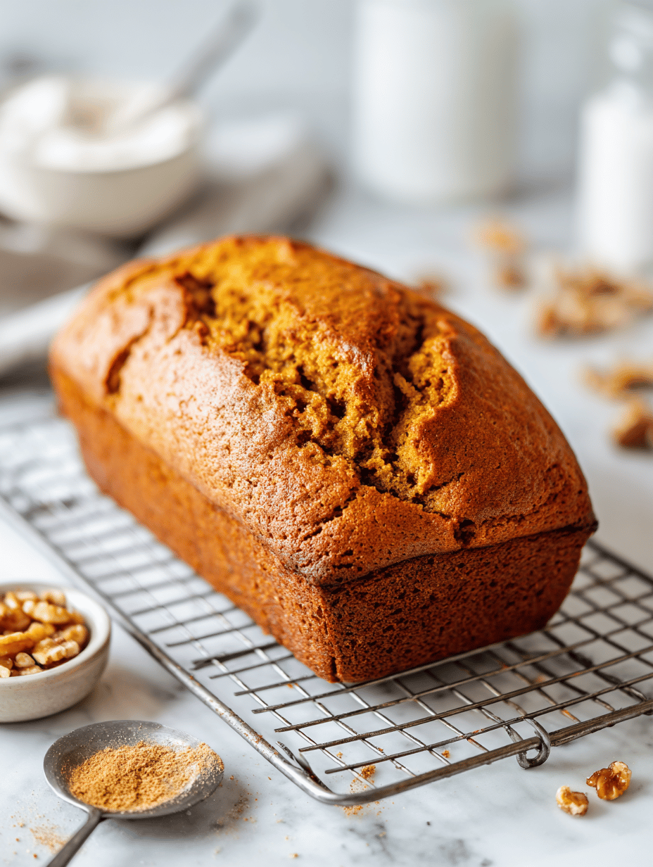 This pumpkin bread is a moist, tender loaf infused with warming spices like cinnamon, nutmeg, and ginger. Made by mixing wet and dry ingredients, then baking until golden, it features a crackly crust and soft, flavorful crumb that’s perfect for fall mornings or cozy gatherings.