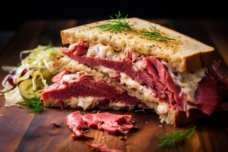 Ultimate homemade delight with this Classic Reuben Sandwich Recipe by Austin. Stacked and loaded with flavorful ingredients like corned beef, sauerkraut, Swiss cheese, and a tantalizing Russian dressing, this sandwich is a game-changer. Once you savor the homemade goodness, you'll never think of ordering it at a restaurant again. Get ready for slices of rye bread grilled to crispy perfection, making each bite an irresistible experience.