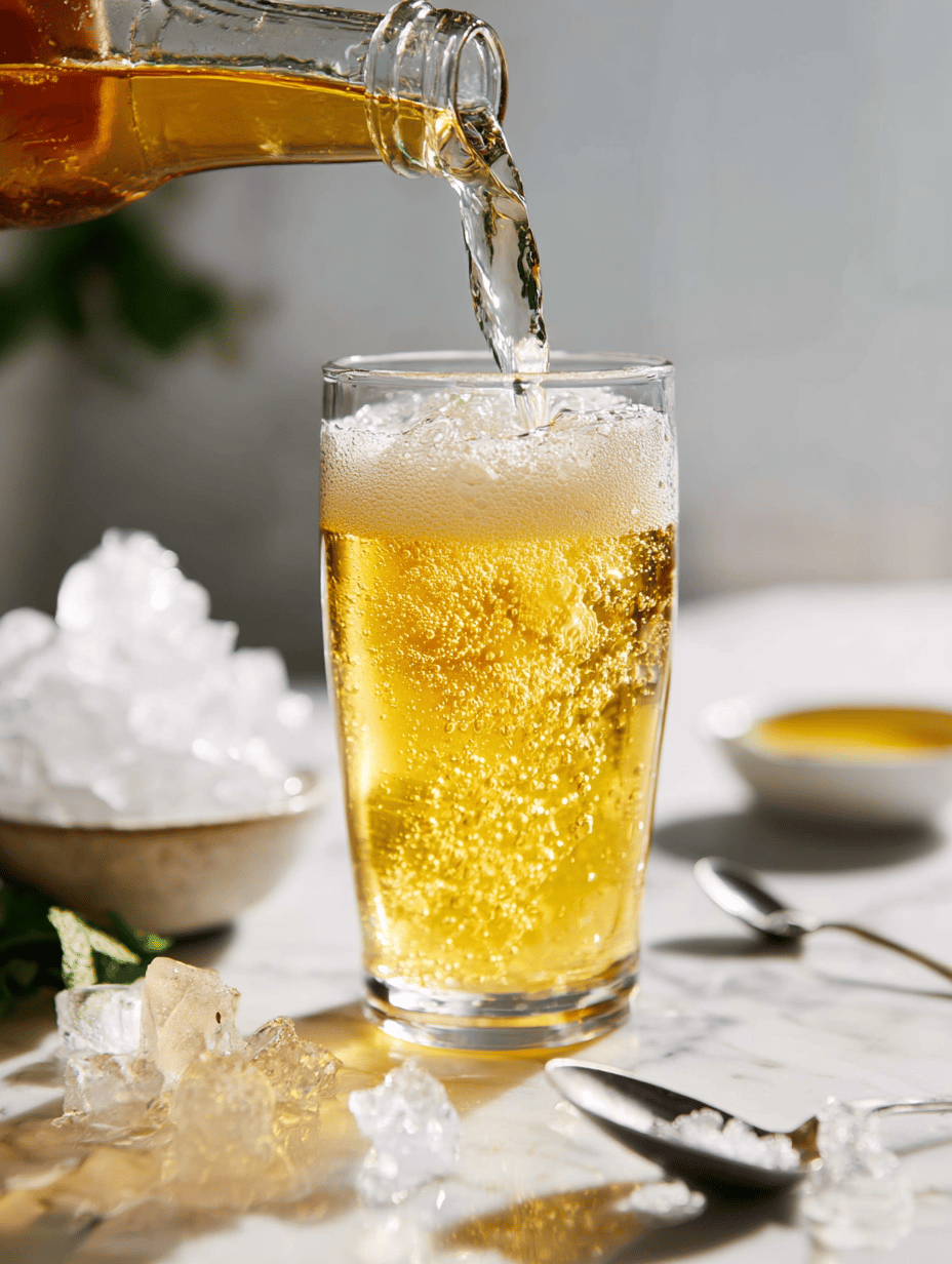 Check the consistency—if it’s too runny, add a bit more ice and blend briefly again. If it’s too thick, stir in a splash of soda or water to loosen it up.