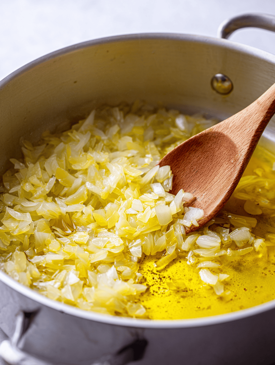 Heat the olive oil in your pot over medium heat until shimmering, then add the chopped onion. Cook for 5-7 minutes, stirring occasionally, until the onion turns translucent and fragrant, filling the kitchen with a sweet aroma.