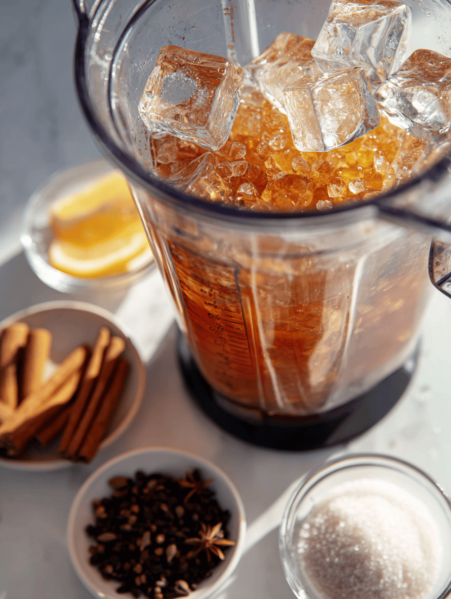 Check the consistency—if it’s too thick, add a splash of cold brewed tea or water and pulse again. If it’s too thin, add more ice and blend briefly until you reach the desired icy swirl.