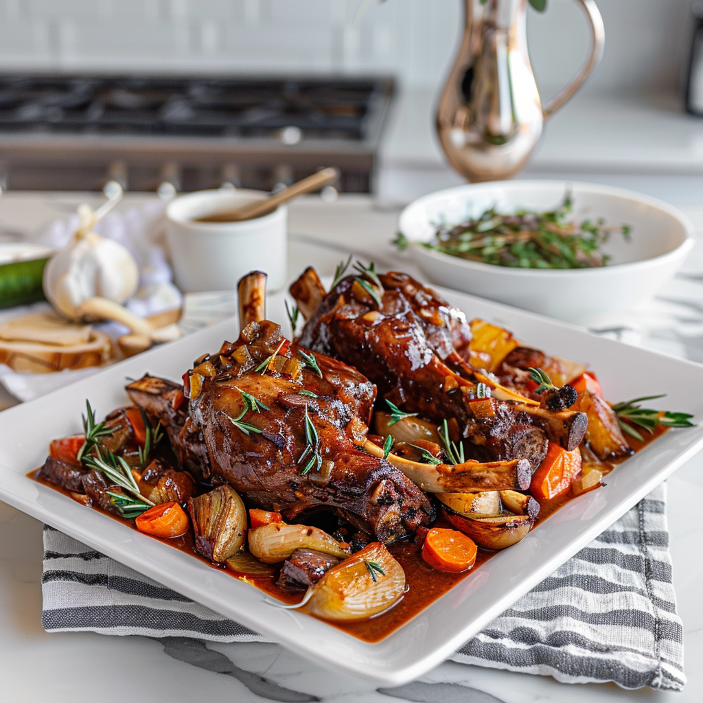 Sear the lamb shanks until golden brown on all sides, about 3-4 minutes per side.