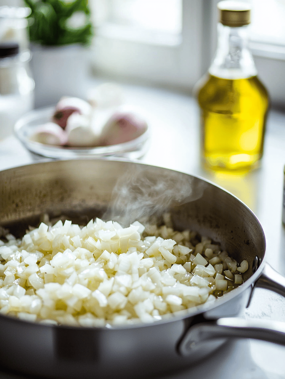 Heat a large pot over medium heat and add olive oil. Once shimmering, add the chopped onion and cook until soft and translucent, about 3-4 minutes, filling your kitchen with a gentle aroma.