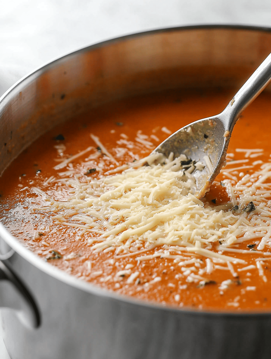 Season the soup with salt and freshly ground pepper to taste, adjusting the flavors until balanced and inviting, with a rich, cheesy aroma.