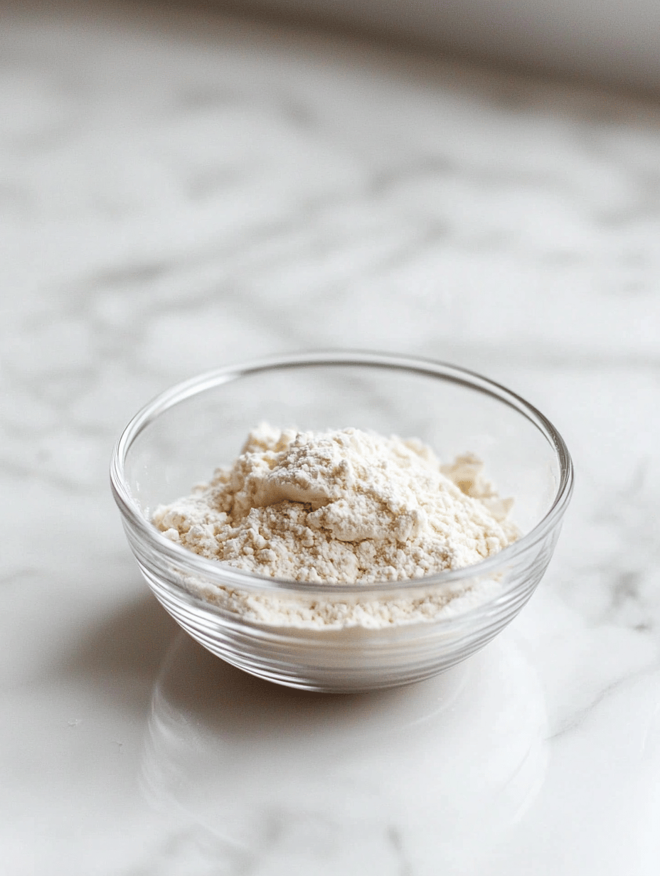 In a small mixing bowl, whisk together the flour, sugar, and baking powder until evenly combined.