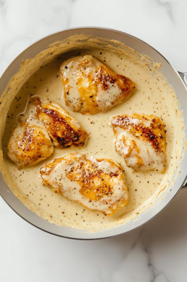 Thin the Sauce: Add enough chicken cooking liquid to the yogurt mixture to reach a heavy cream consistency. Heat until it thickens slightly.