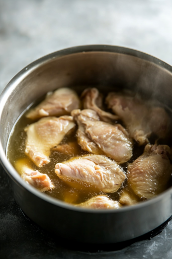 Cook the Chicken: Place chicken pieces in a large pot with salted water. Cook over medium heat for about 45 minutes until almost done.