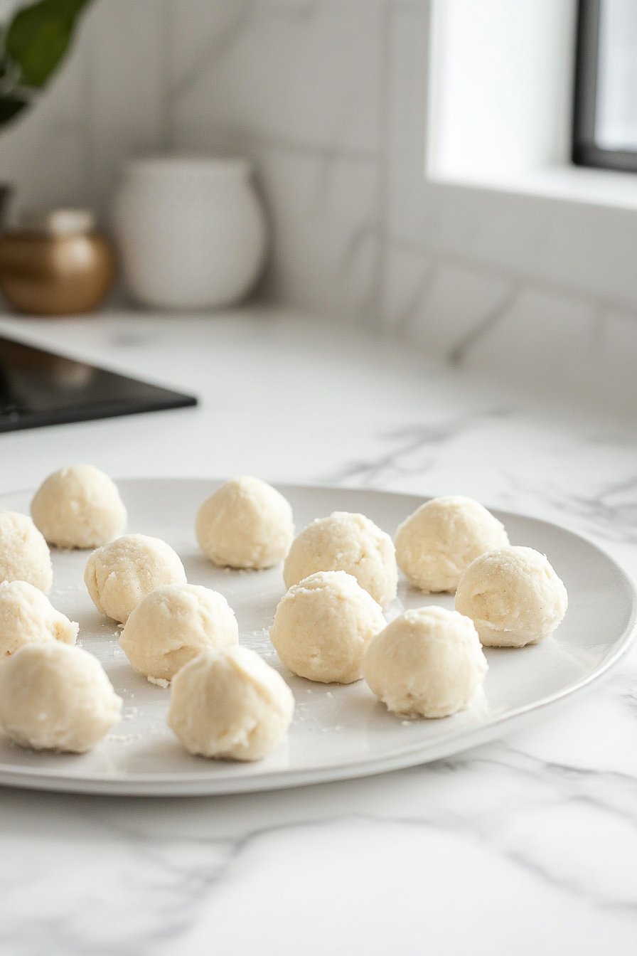 Scoop dough with a 2 Tbsp. cookie scoop, place on a plate or baking sheet, and chill for 30 minutes to 1 hour.