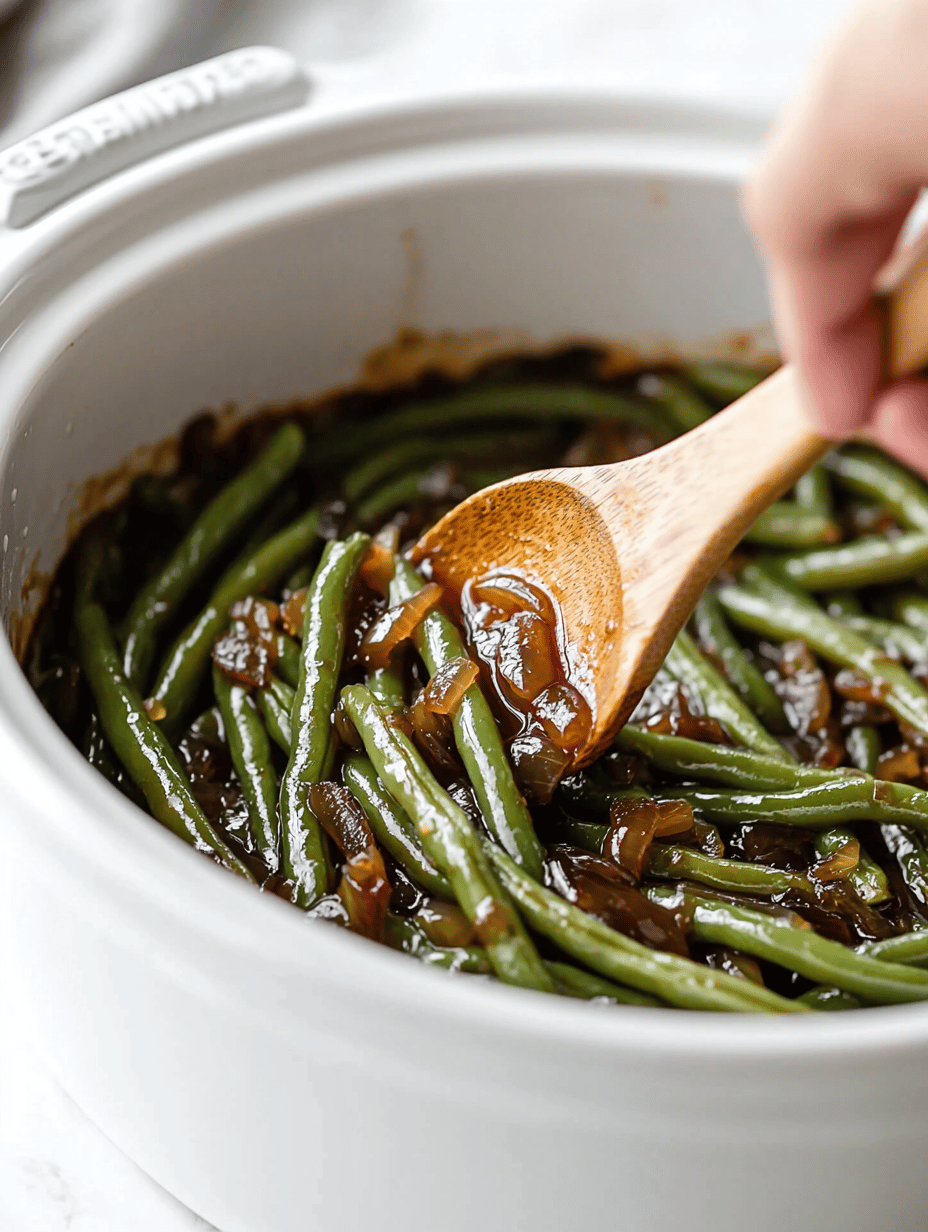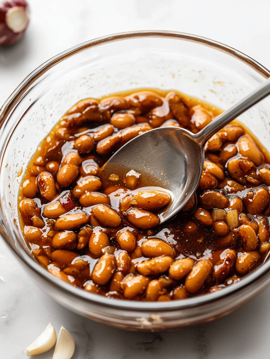 Once the beans are tender and have developed a sticky, glazed appearance, stir in the apple cider vinegar to brighten the flavors, if desired.