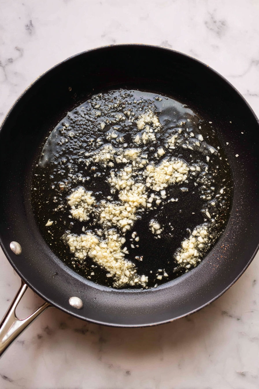 In the same pan, melt butter. Add garlic and cook for 1 minute until fragrant.