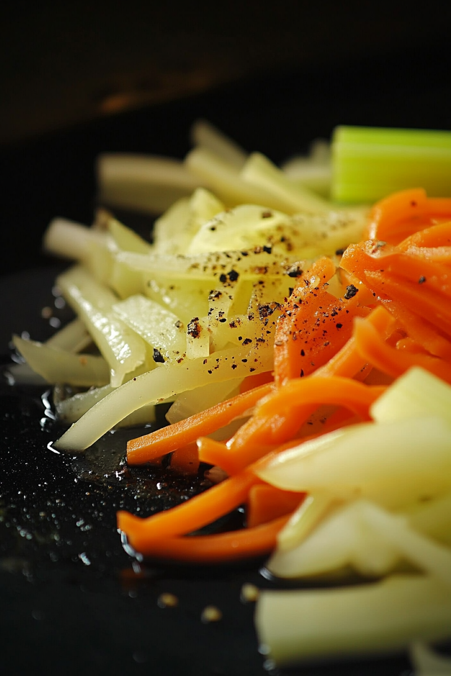 Add onion, carrots, celery, salt, and pepper. Cook for 8 minutes, stirring occasionally.