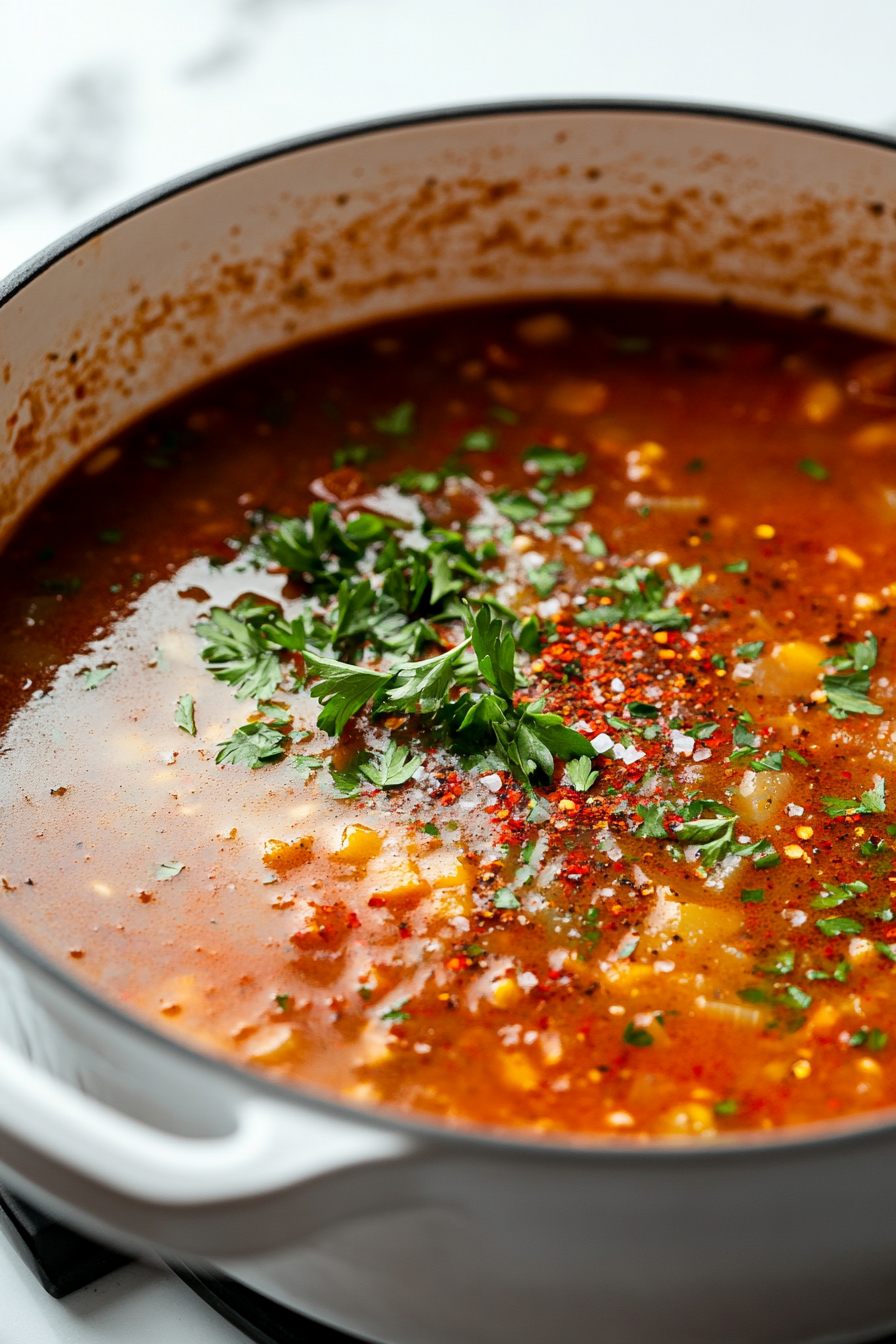 Season to taste and serve with parsley, red pepper flakes, and Parmesan if desired.