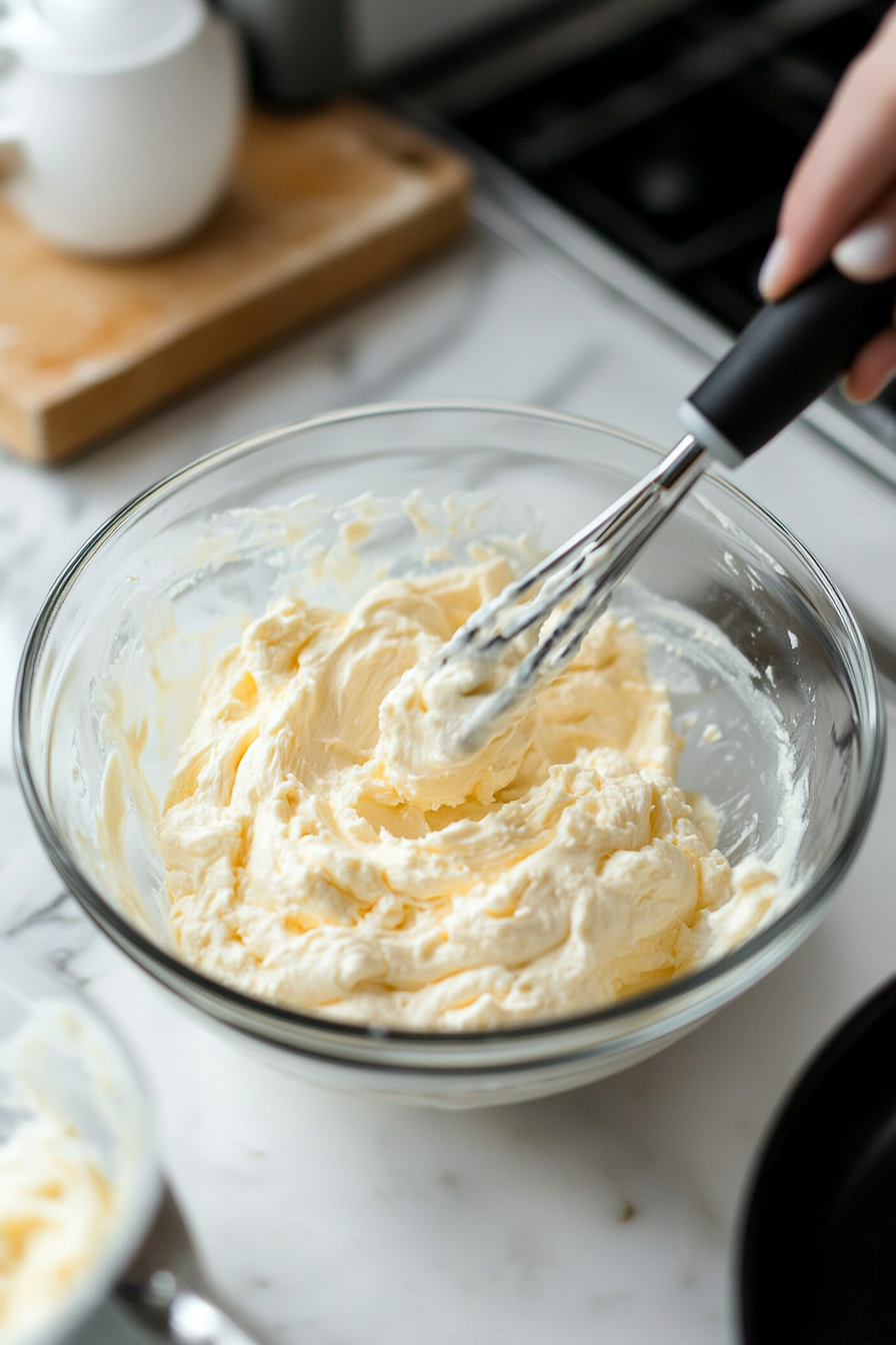 Cream together cream cheese and sugar for 2 minutes until smooth, scraping the bowl as needed.