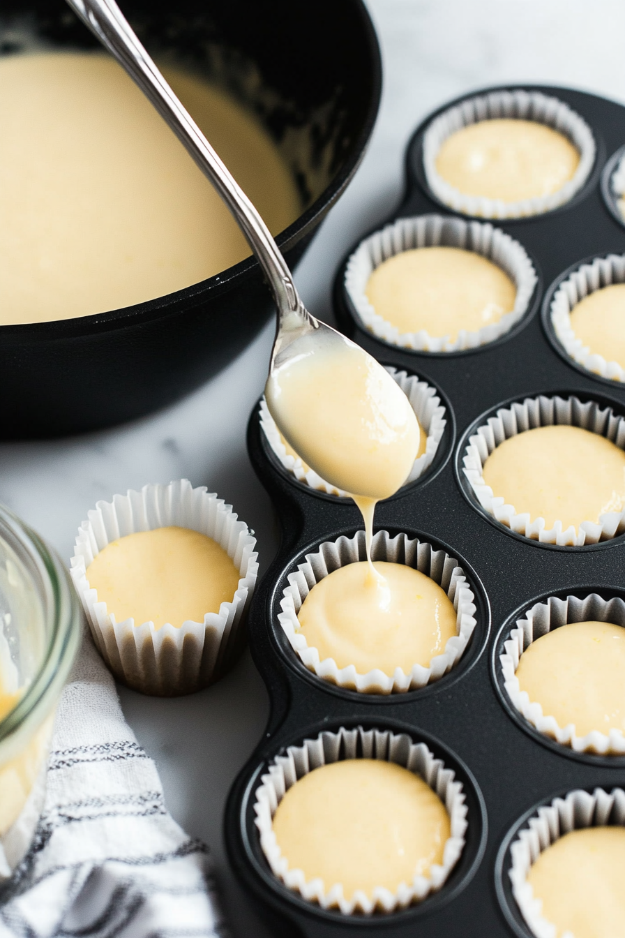 Spoon the batter into the muffin cups.