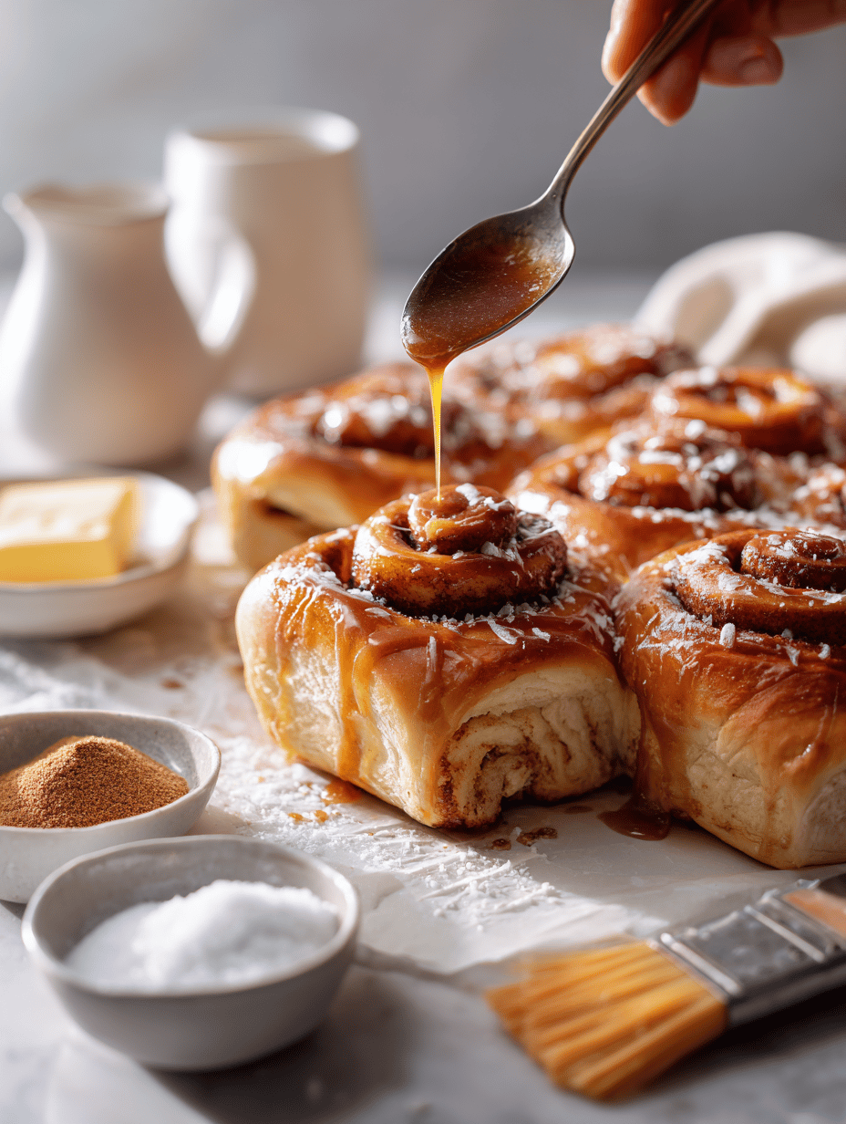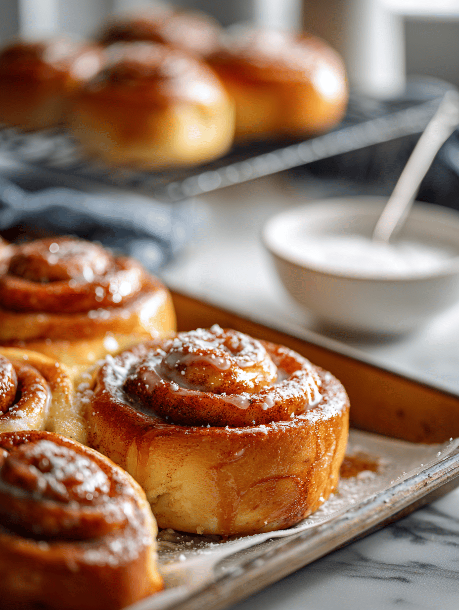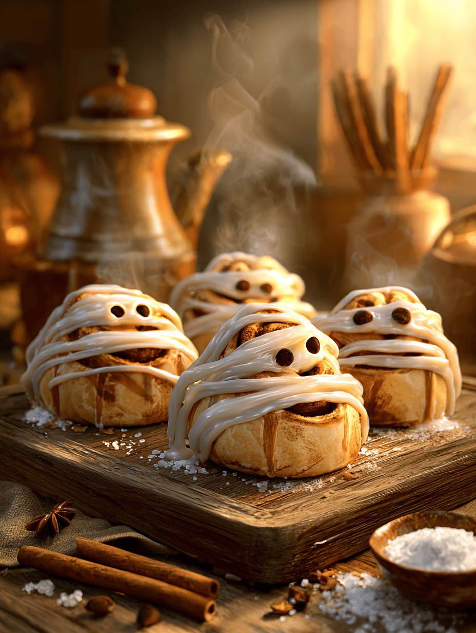 Mix powdered sugar with milk to create a glaze. Drizzle over the warm rolls, and optionally, decorate with small strips of leftover dough to resemble mummy bandages for a fun, spooky effect.