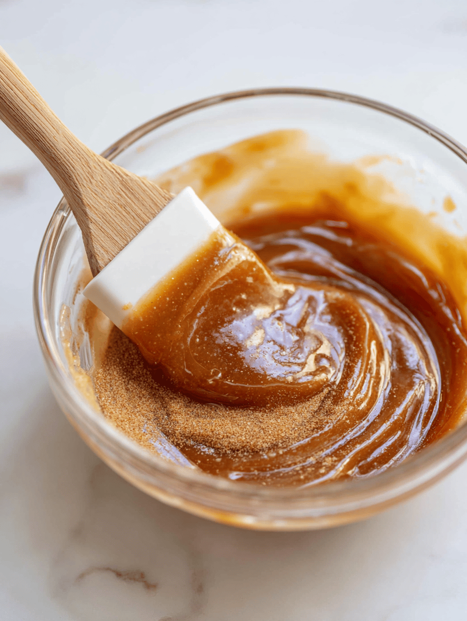 Meanwhile, melt the butter for the filling and mix it with brown sugar and cinnamon until well combined and fragrant.