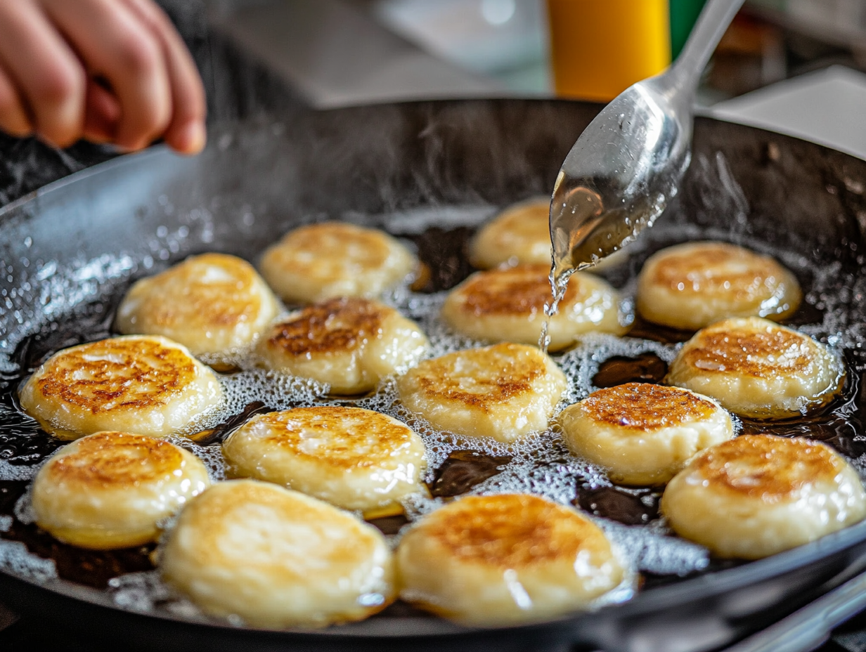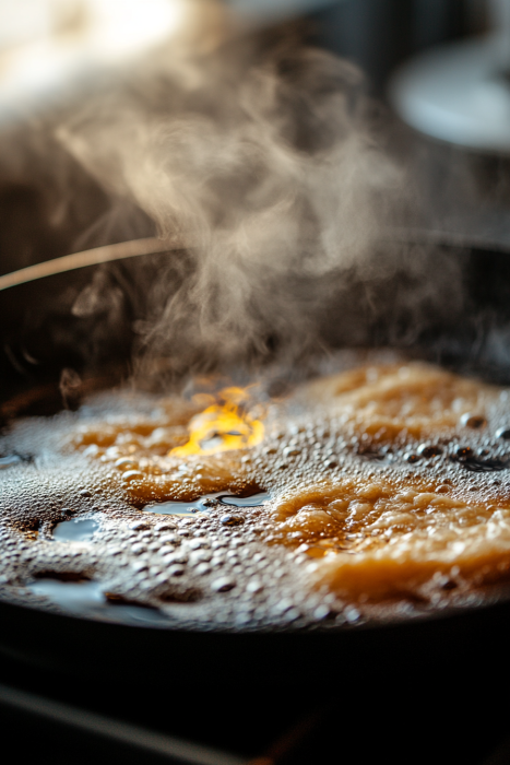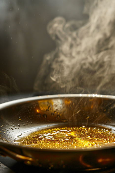 Heat the OilIn a deep skillet, heat about 1 inch of oil over medium heat until shimmering (around 350°F / 175°C).