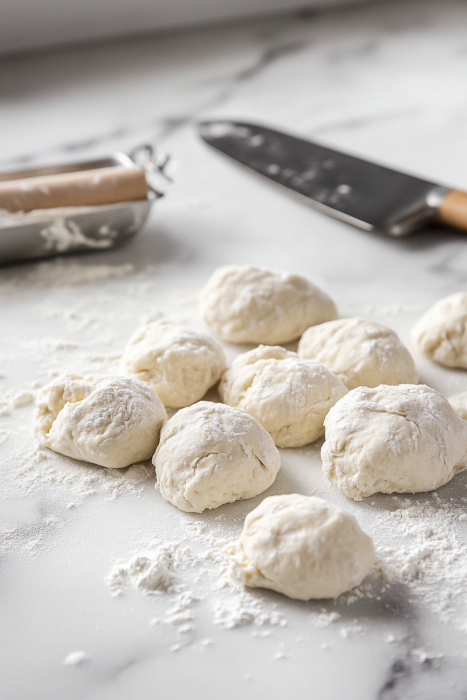 Knead GentlyTurn the dough onto a lightly floured surface. Knead it for 2–3 minutes, just until smooth and elastic. Overworking will make it tough — this dough likes kindness.