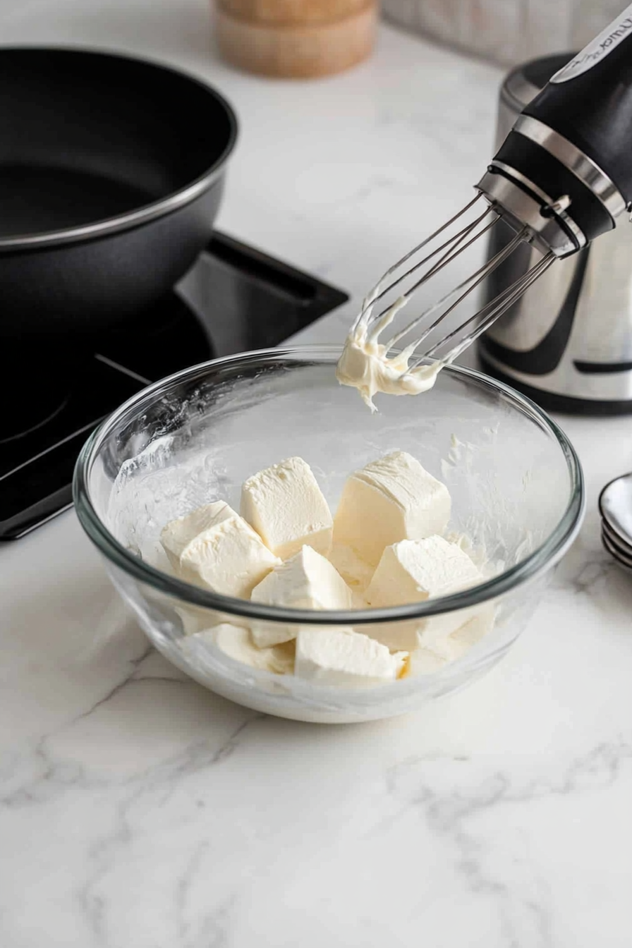 In a separate bowl, beat heavy cream on high until stiff peaks form, then gently fold into the cream cheese mixture.