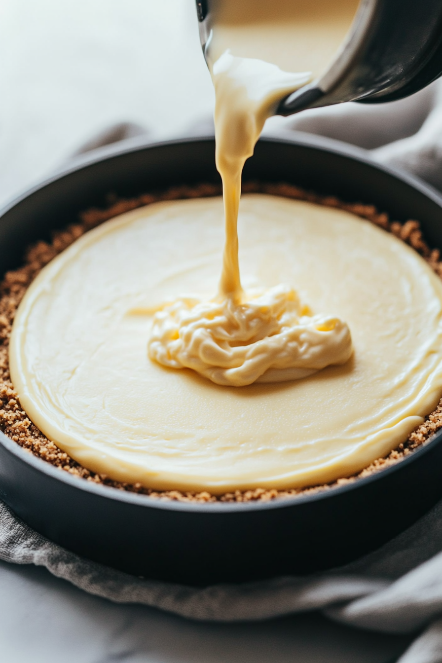 Combine graham cracker crumbs and butter, then press into the bottom and about 1/2" up the sides of the pan.