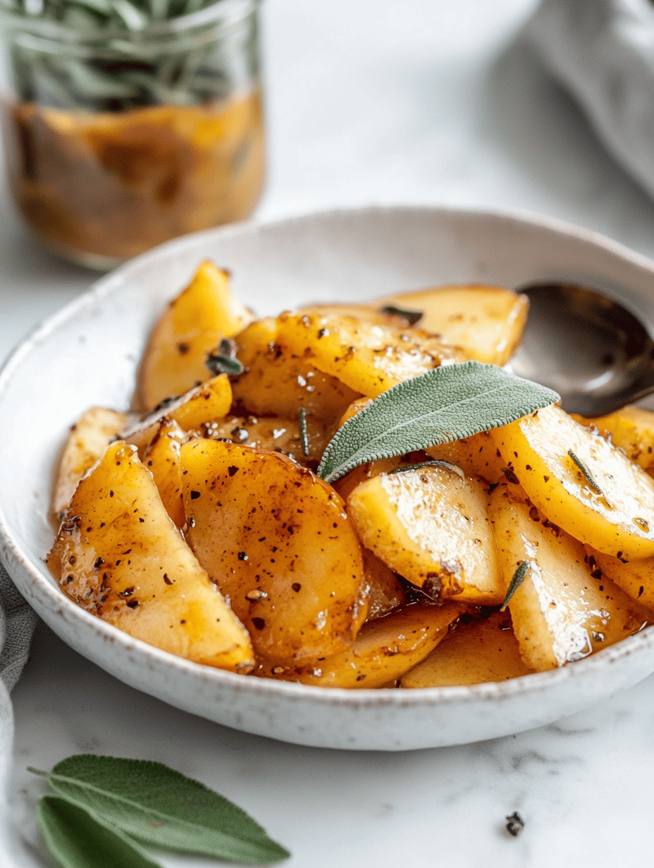 Remove from heat, taste the sauce and apples, and adjust seasoning if needed. Sprinkle extra sage or herbs for garnish if desired.
