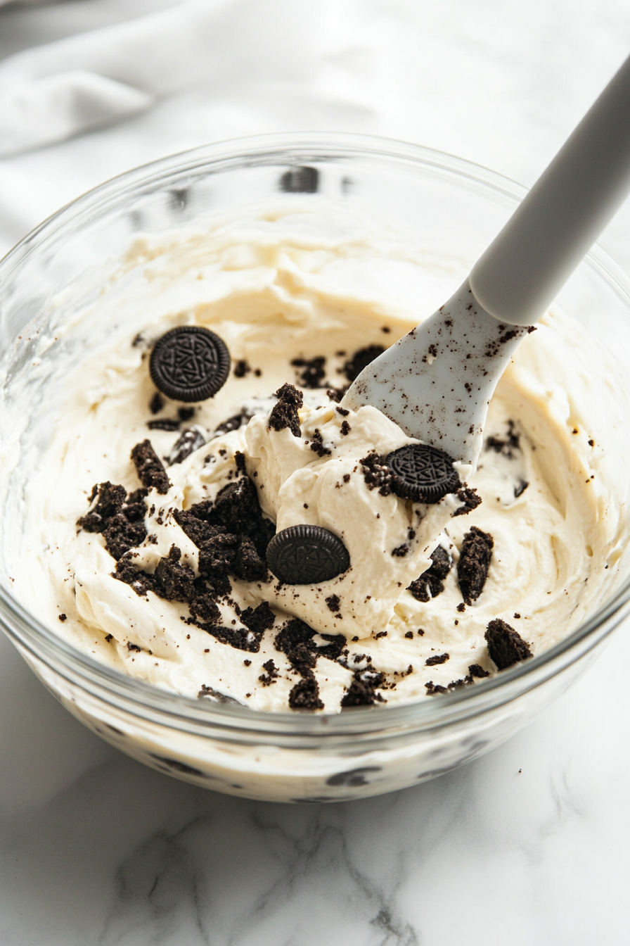 Add Oreos: Gently fold in chopped Oreo chunks.
