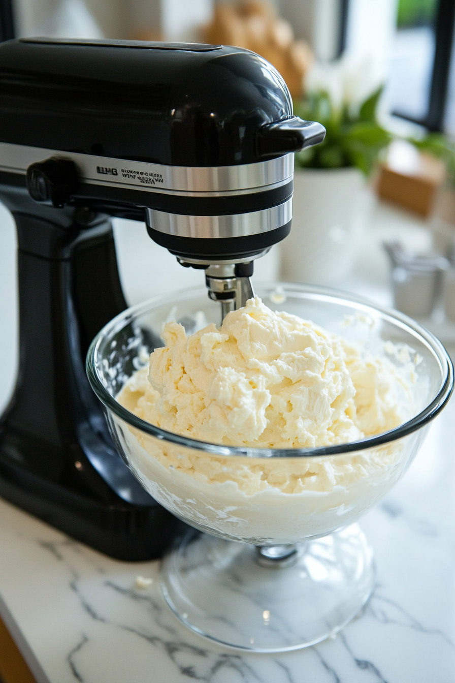 Prepare Cheesecake Filling: Beat softened cream cheese in a bowl until smooth and fluffy. Add eggs one at a time, mixing after each. Stir in sugar and vanilla, scraping the bowl as needed.