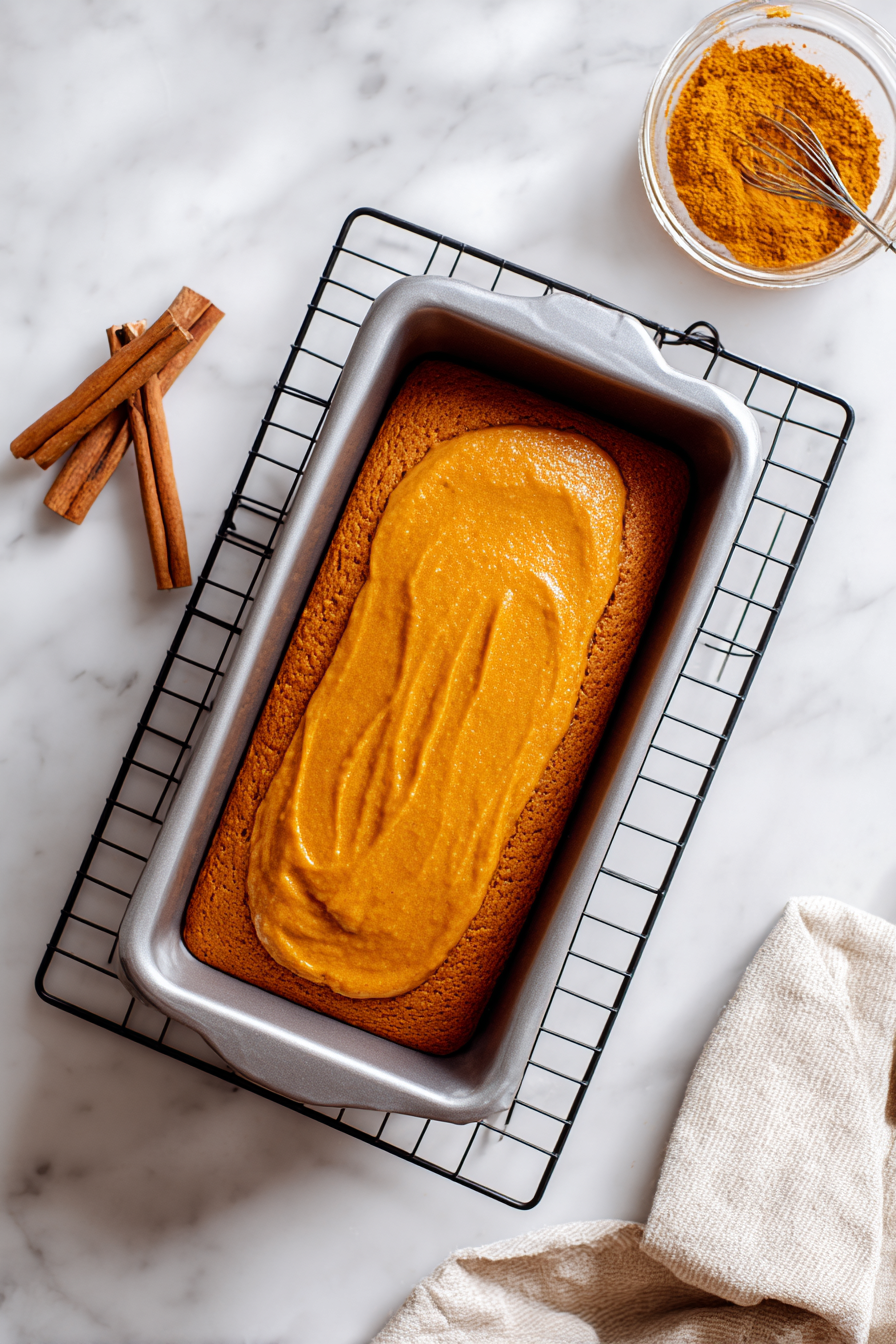 Bake at 350 F for 1 hour. Cool in pan on a wire rack for 15 minutes before slicing.