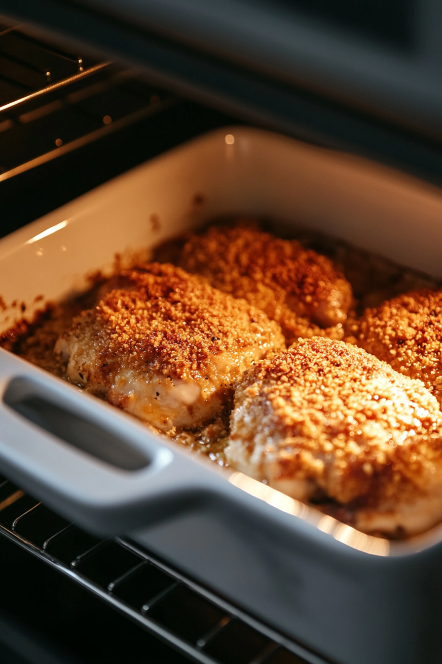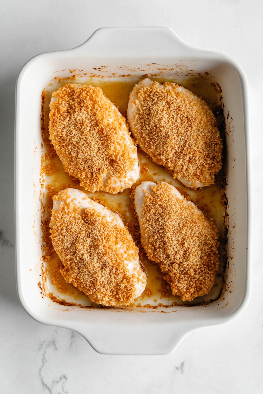 Place chicken in a 9x13 baking dish and repeat with remaining pieces.