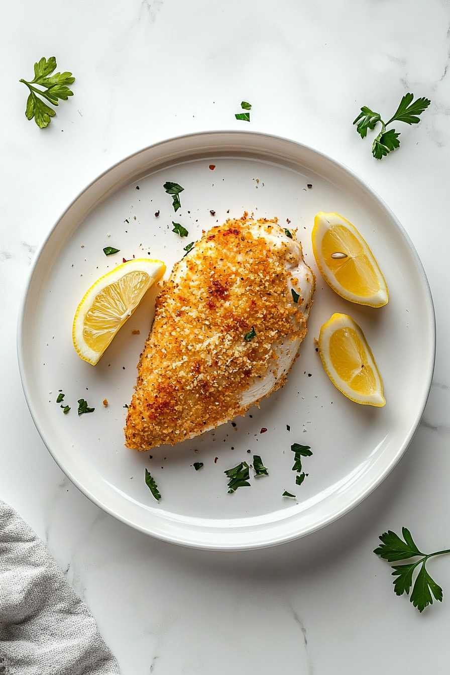 In one dish, mix bread crumbs, Parmesan, parsley, salt, and pepper.