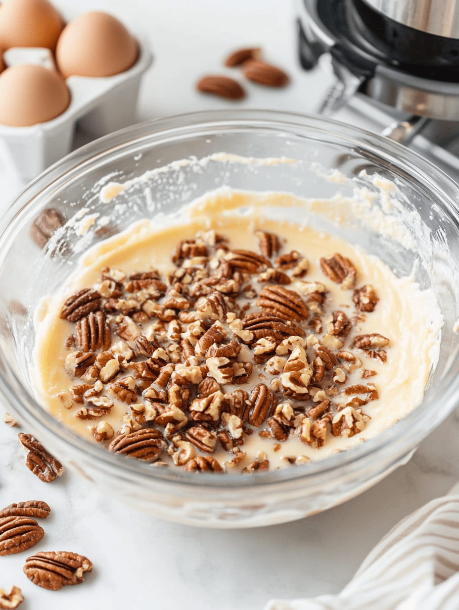Fold in the chopped pecans until they are evenly distributed.